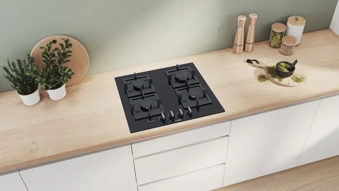 Placa de gas en cristal templado: disfruta de un diseño vanguardista y fácil de limpiar.